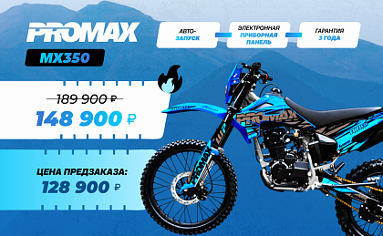 Цена на товар Кроссовый мотоцикл PROMAX MX350 не является итоговой и может измениться в зависимости от валютных курсов, общей экономической ситуации или логистических и иных факторов.